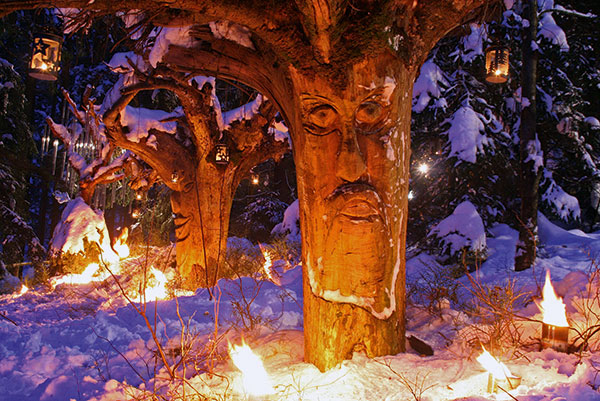 Bei uns gibt es hunderte Kerzen und Lagerfeuer die den Wald erhellen, Wichtel und Waldgeister huschen durch den Winterwald.