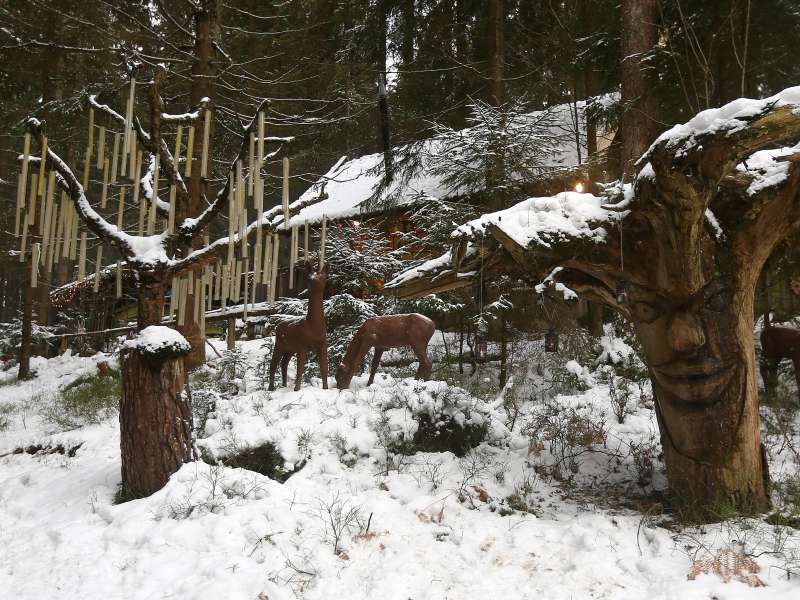 Bei uns gibt es hunderte Kerzen und Lagerfeuer die den Wald erhellen, Wichtel und Waldgeister huschen durch den Winterwald.